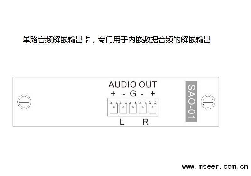 SAO-01 Audio單通道解嵌輸出卡,配合SMD主機使用,采用獨立板卡設(shè)計,每塊卡支持1路雙聲道平衡Audio輸出,專門用于內(nèi)嵌數(shù)據(jù)音頻的解嵌輸出.