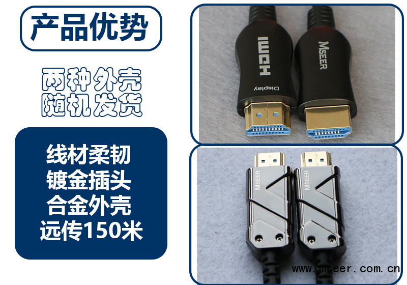 HDMI光纖符合2.0規范,傳輸速率可達到18G,可以支持 4K@60Hz畫質以及 4:4:4傳輸效果;向下兼容2K&1080P&3D等畫質。信號衰減小于0.0035db/米,突破傳統銅纜傳輸距離受限制的瓶頸,可以實現150米的遠距離傳輸。